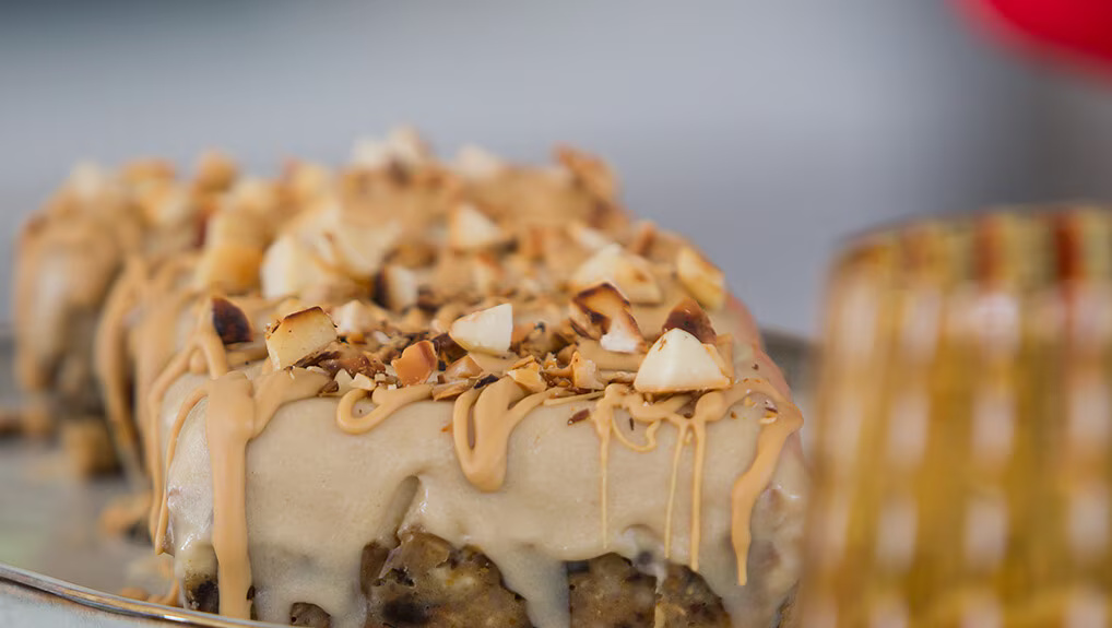 For the tahini caramel, combine the ingredients with a hand blender until smooth and spread the mixture onto of the base. Place in the fridge overnight to set.