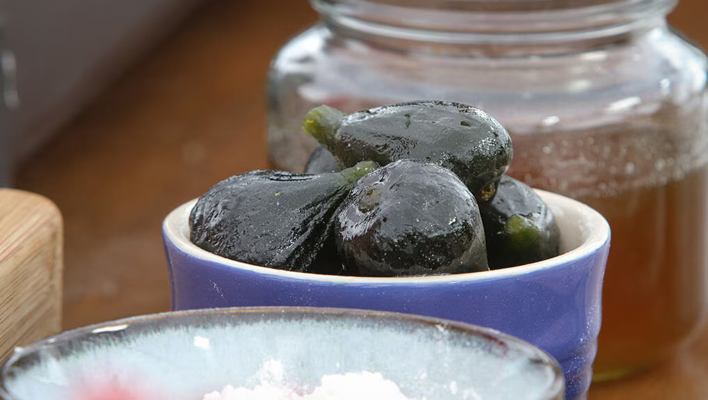 Preheat the oven to 200°C. Cut the tops off each fig, and create an opening by cutting a cross at the top without cutting all the way through. Wrap each fig with a strip of prosciutto.