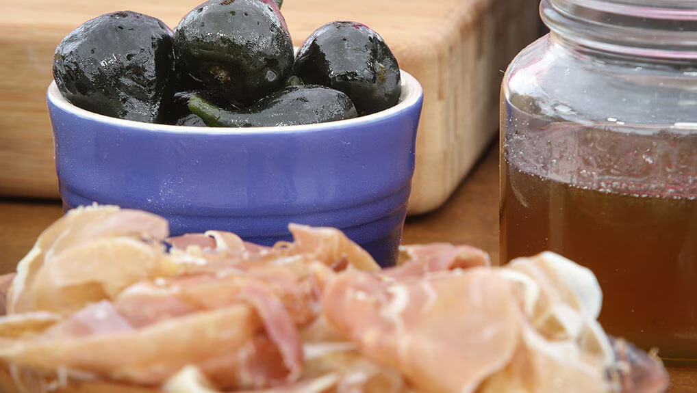 While the pastry bakes, in a sauce pan, heat together the preserving liquid and chilli flakes.