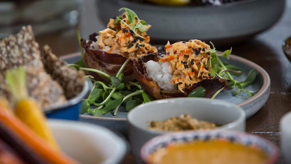 - Arrange the meats & cheese on a large board. Place the chutney into a bowl or top on your favourite cheese. Place the pork belly cubes into a little bowl including some of the sauce. Put your Bacon Cups onto the board and fill the gaps with the crudités & dips.